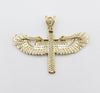 Handcrafted with precise detail, High Quality, 14K Gold Angel Wing Cross Pendant with Cubic Zirconia Stones.